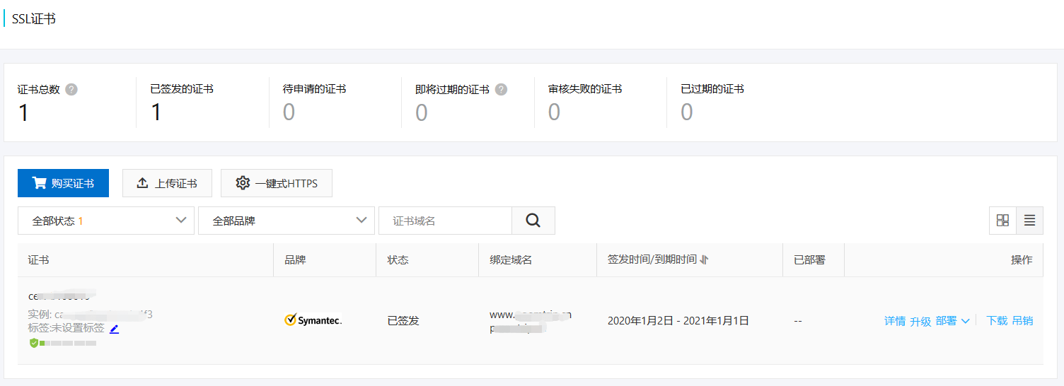 4.2.1.4、为域名绑定SSL证书(视项目需求而定,此处使用免费版本)。该系统用nodejs写的后端,所以此处以nodejs配置为例,使其支持https访问。参考文章Nodejs配置Https服务