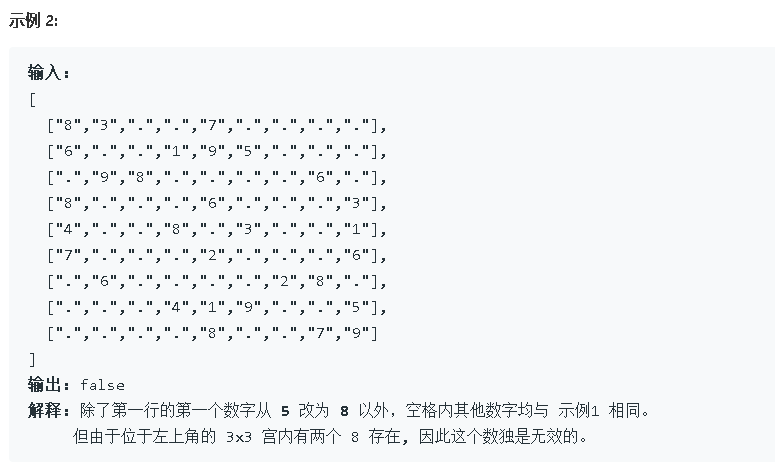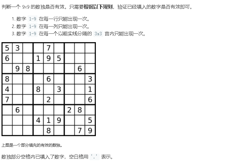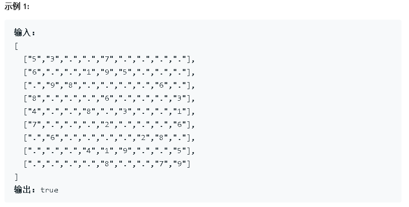 归纳一下题目的要求:给出一个char型的二维数组九宫格,判断每一行,每一列,每一格内是否有重复的数字