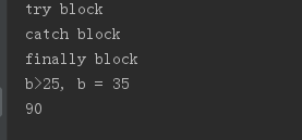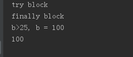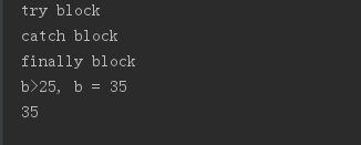 说明了发生异常后,catch中的return语句先执行,确定了返回值后再去执行finally块,执行完了catch再返回,finally里对b的改变对返回值无影响,原因同前面一样,也就是说情况与try中的return语句执行完全一样。