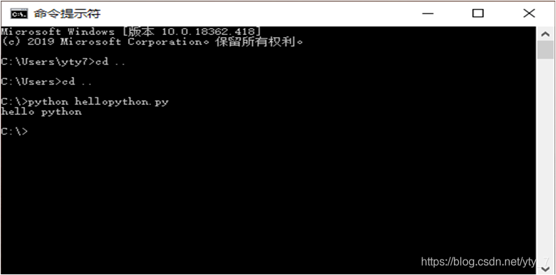 通过命令行窗口进入python并开在交互式解释器中开始编写Python代码。