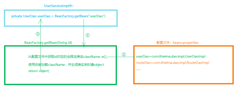 private UserDao userDao = (UserDao) BeanFactory.getBean("userDao");
