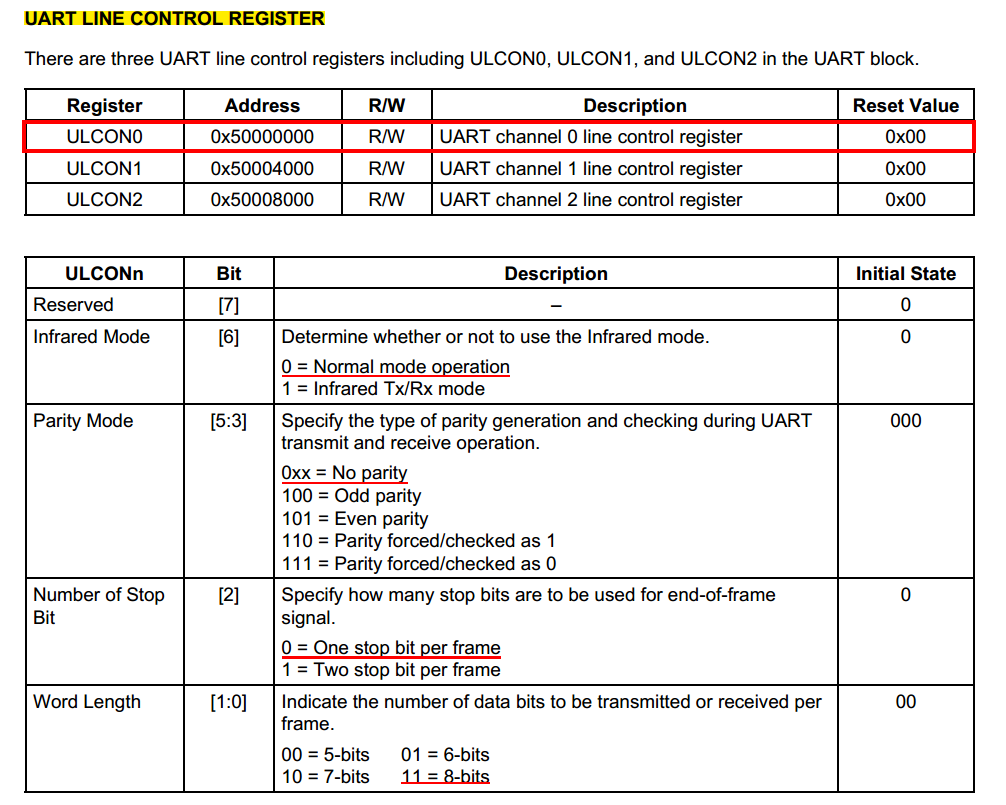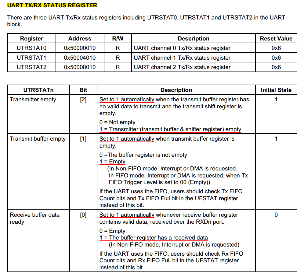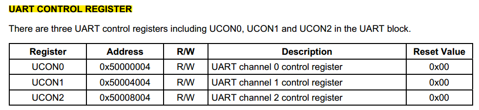#define URXH0 (*(volatile unsigned char *)(0x50000024)) //UART 0 receive buffer