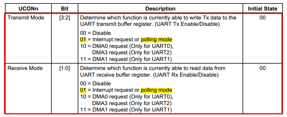 3.4.数据发送/接收缓存寄存器(UTXHn和URXHn)