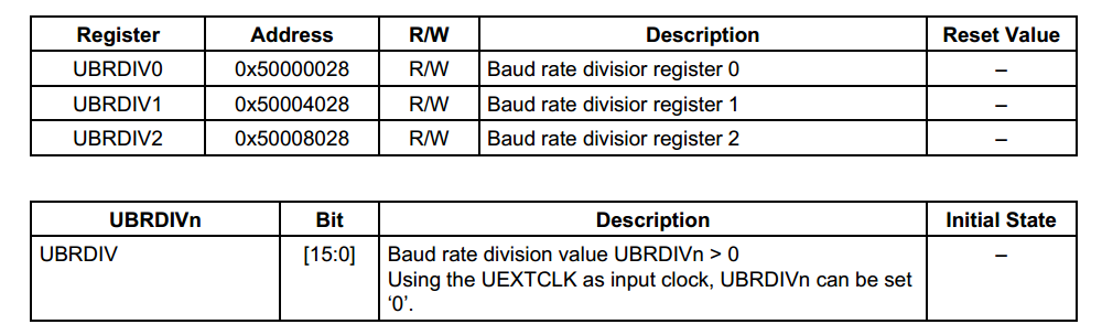 /* 设置波特率为115200bit/s(PCLK = 50Mhz) */