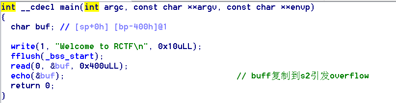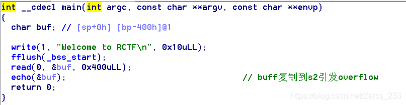 这里的buf有0x400大,但是main不存在栈溢出,继续点开echo