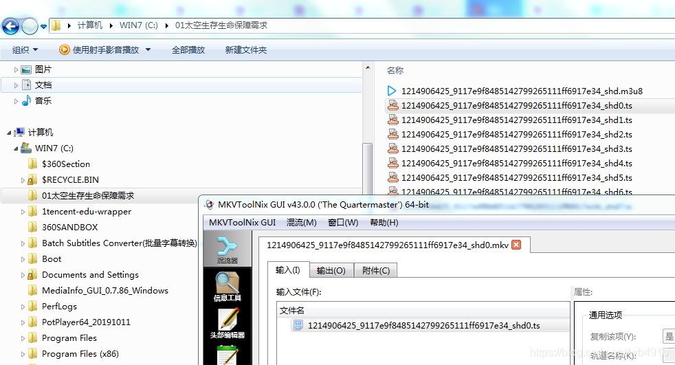 最开始傻傻地把把全部的ts文件都拖入到:mkvtoolnix中。结果混流之后的文件打不开了!