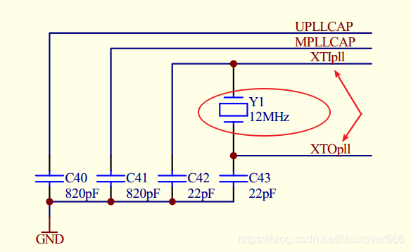 以JZ2440开发板为例,其使用的是12Mhz外部晶振, 硬件电路如下: