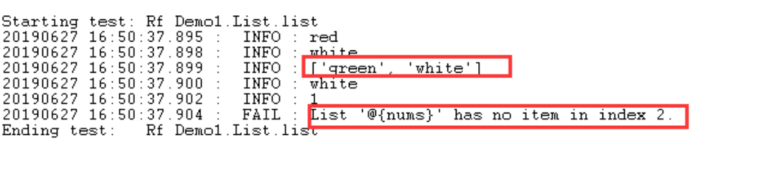 访问:@{NAME}[index]或者 ${NAME}[index],其中index为下标。Robot Framework 3.1版本中,除了列表的切片必须用$符号外其它情况下@和$都可以,建议使用$。列表的访问和python中类似,下标从0开始,负数的话表示从后向前取数据,如果下标超过列表长度的话会报索引错误,也可以使用切片