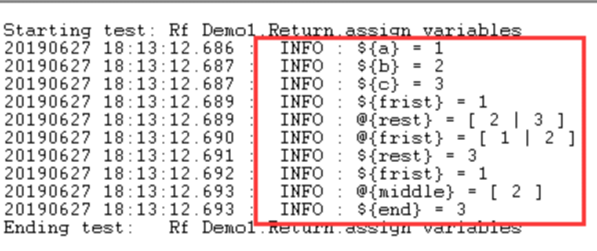 在*** Variables ***下,用${var}定义标量,在*** Test Cases ***中用log输出