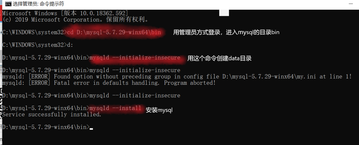 b) 用命令创建data目录 mysqld --initialize-insecure