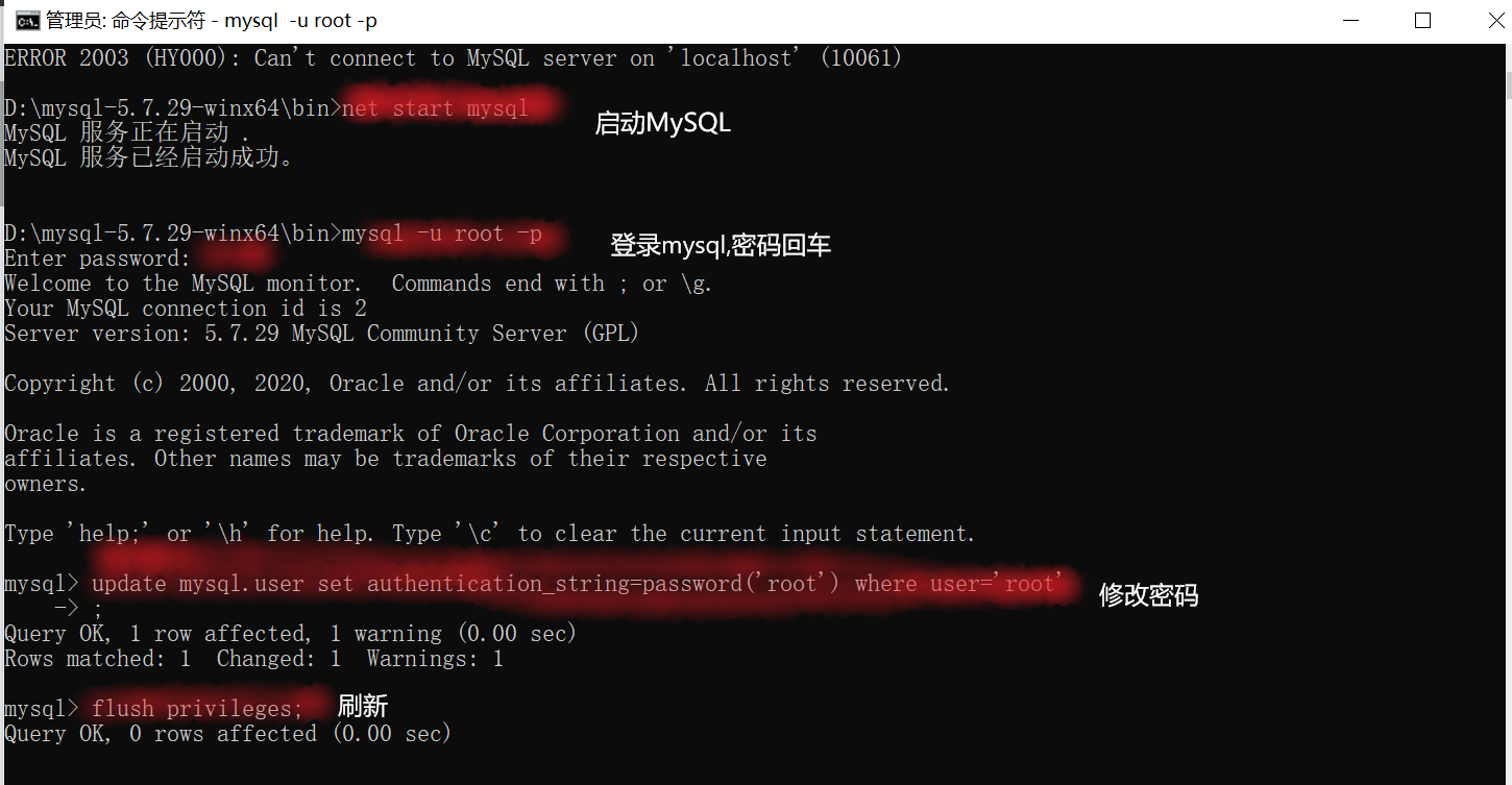 c) 启动mysql命令: net start mysql