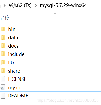 2)在D:\mysql-5.7.29-winx64目录下新建my.ini文件,复制如下内容