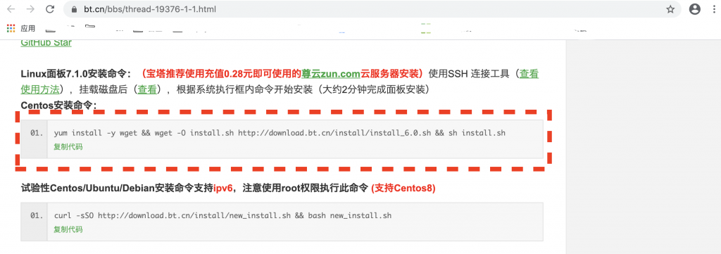 点击立即安装后,进入下一个页面,找到centos7的安装命令: