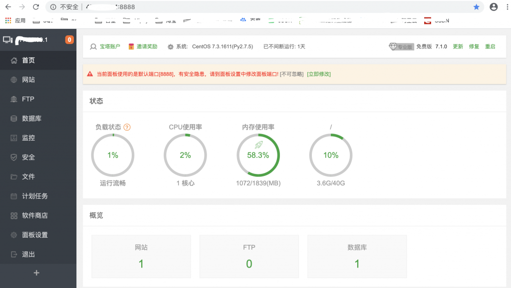 硬盘:100M以上可用硬盘空间(纯面板约占20M磁盘空间)系统:CentOS 7.1+ (Ubuntu16.04+.、Debian9.0+),确保是干净的操作系统,没有安装过其它环境带的Apache/Nginx/php/MySQL(已有环境不可安装)