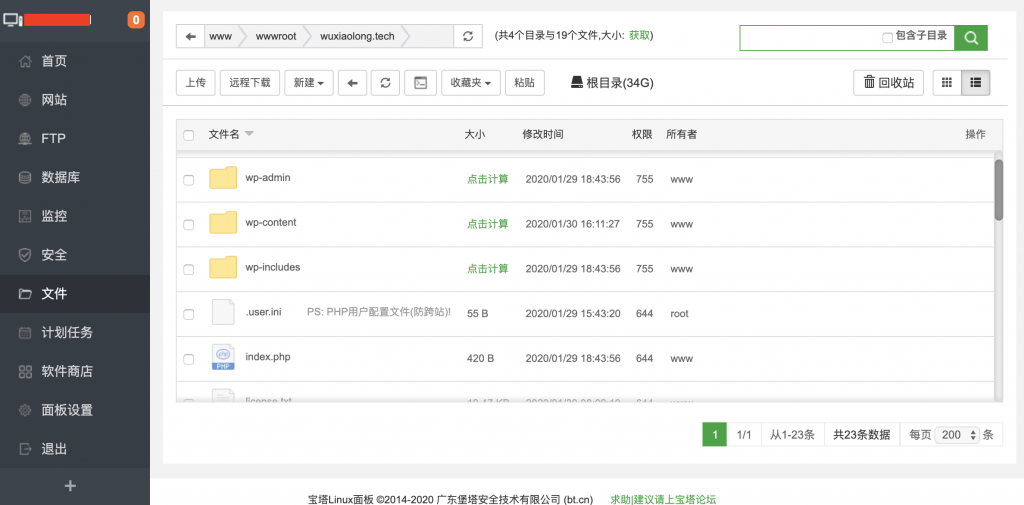 虽然现在可以通过IP或者域名访问我们的网站了,由于网站的内容是默认生成的,并且不符合我们的需求,所以我们需要把我们自己的网站内容放到宝塔面板-文件中。