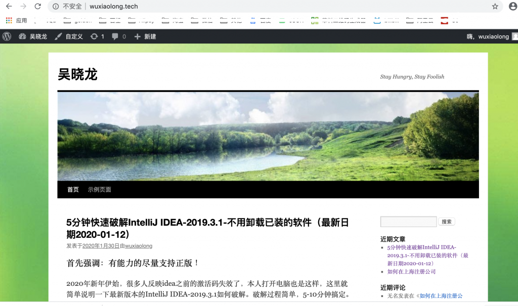 在-文章-菜单中发布的文章,我们可以通过域名或者IP可以直接访问,例如:http://wuxiaolong.tech/