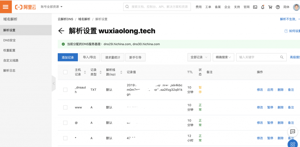 我使用的是阿里云,域名解析直接在阿里云上配置就好了。