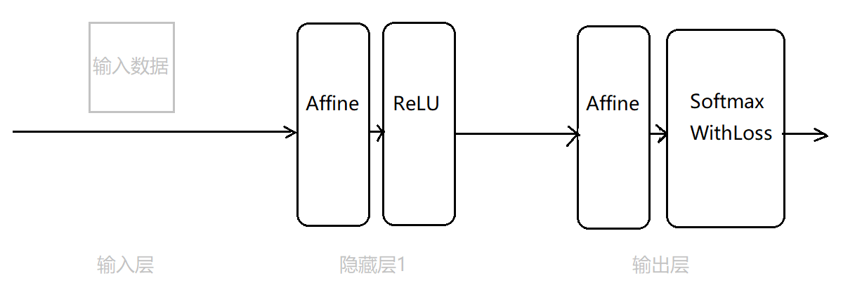 同数值微分版的实现不同,这里的二层神经网络类运用上篇博客介绍的各种计算层(下图中的黑色方框)来进行实现。