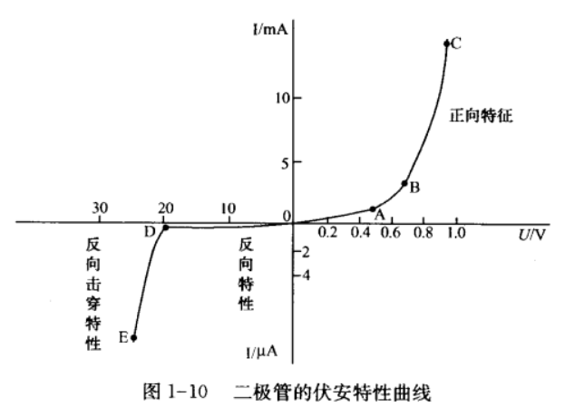 二极管最重要的特性就是单方向导电性,它可以用加在二极管两端的电压和流经二极管电流的关系(简称伏安特性)来说明。