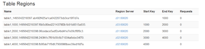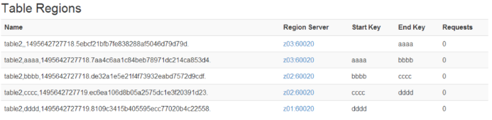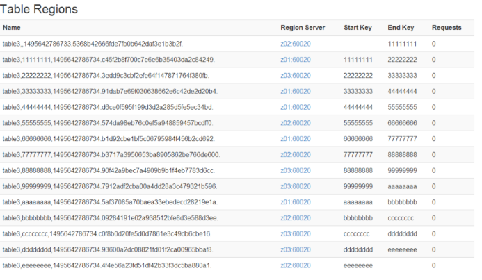 hbase(main):004:0> create 'staff3','partition2',SPLITS_FILE => '/export/servers/splits.txt'