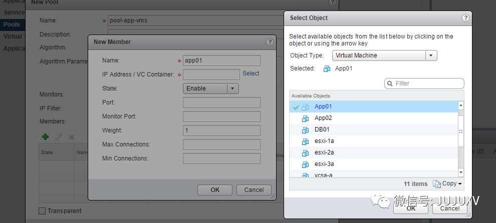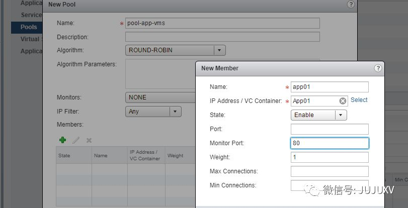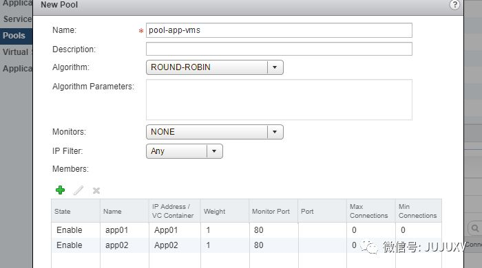 定义服务器池pol-app-vms,将App01和App02设置为池成员