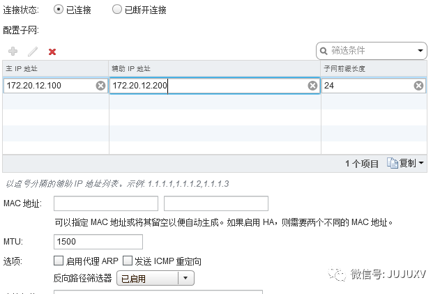 指定VIP地址为dev-esg的辅助地址,即172.20.12.200