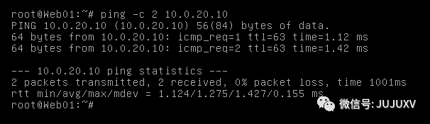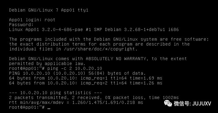 访问App01虚拟机的命令行,尝试ping dev-lb-app的内部接口地址,也是App服务负载均衡器的VIP地址,即10.0.20.10;