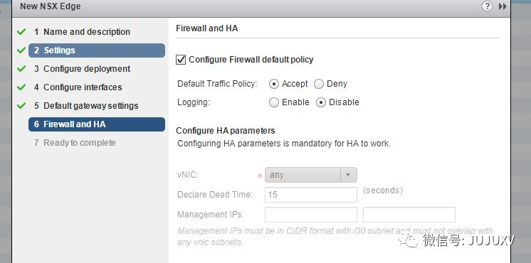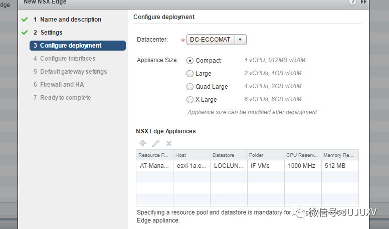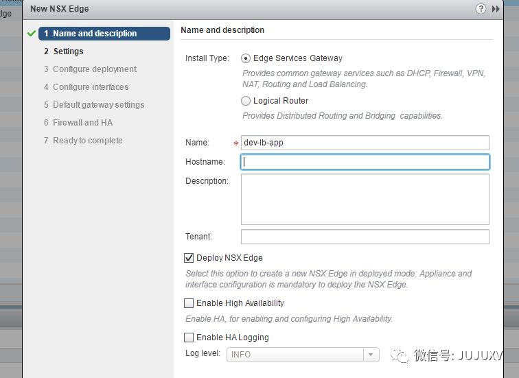 与之前部署dev-esg步骤类似,首先要部署一台Edge Services Gateway设备,并命名为dev-lb-app: