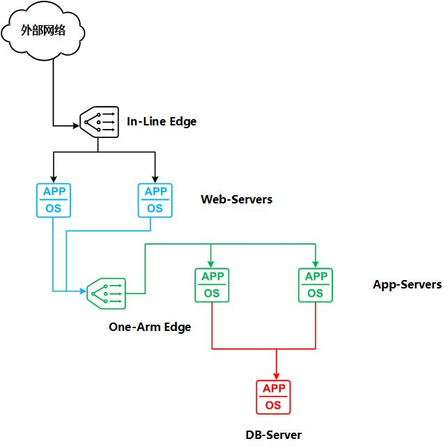 如下图所示,我将部署2台Edge,分别作为Web业务服务器和App业务服务器的负载均衡设备:
