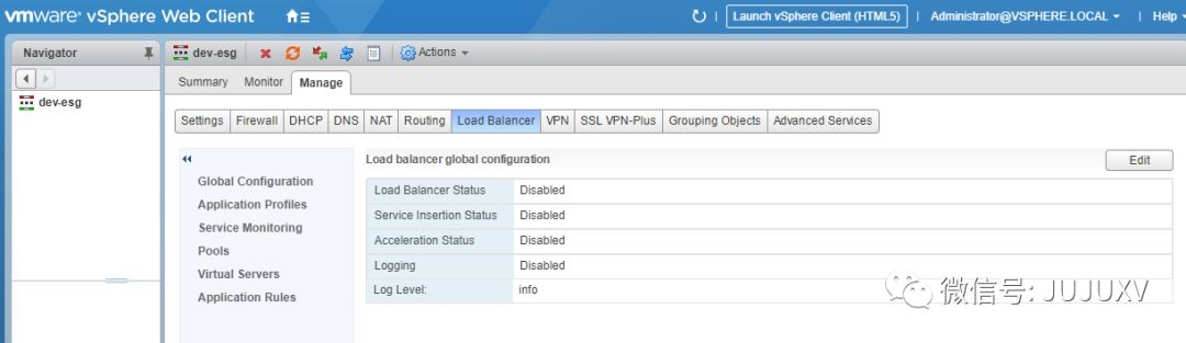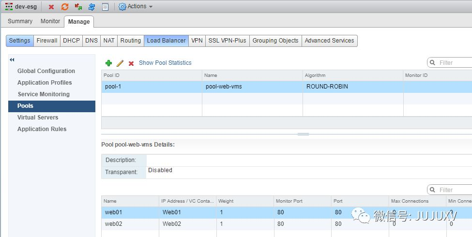 现在,我将首先演示利用上篇部署的dev-esg,部署承载Web服务的负载均衡器。