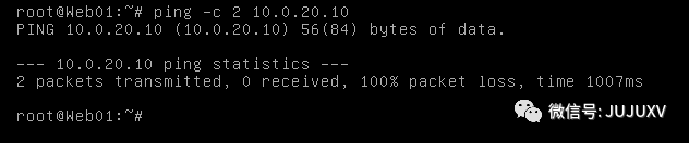 访问Web01虚拟机的命令行,进行相同的测试,可以发现Web01无法与dev-lb-app实现三层互访;
