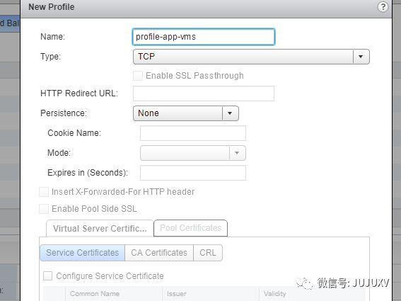 定义应用配置文件;与之前的设置不同,这次是针对4层的负载均衡,因此选择类型为TCP