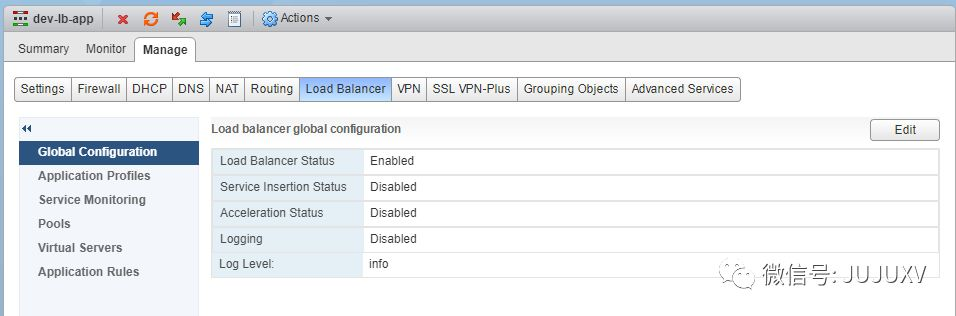 进入到Load Balancer负载均衡器配置界面,在默认的Global Configuration页面,点击Edit编辑全局设置