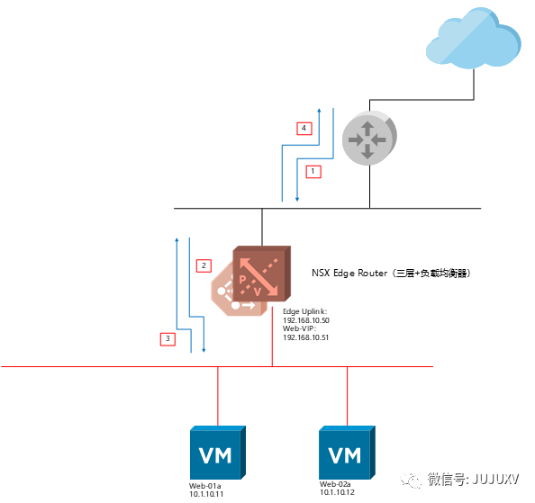 NSX Edge IP地址->服务器IP地址(Web-01a或者Web-02a)