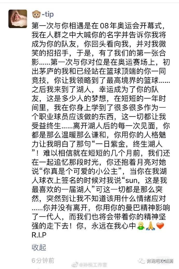 作为科比的挚友和最喜欢的队友之一,保罗-加索尔同样表达了自己的看法: