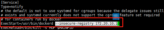 ExecStart=/usr/bin/dockerd --insecure-registry 172.20.10.10