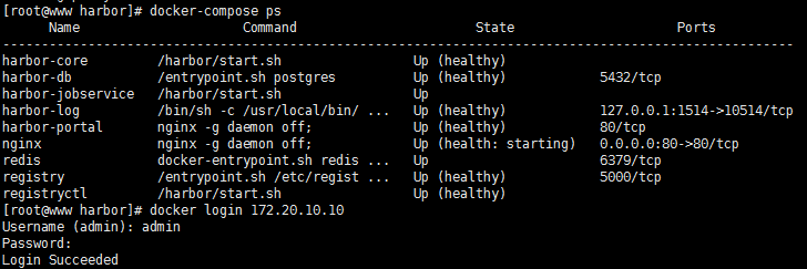 安装成功会看到:✔ ----Harbor has been installed and started successfully.----