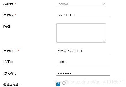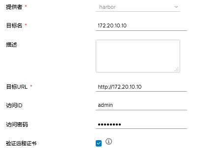 拉取镜像:在从harbor仓库管理里新建目标,编辑目标(即主harbor信息:url、访问id等),测试连接。