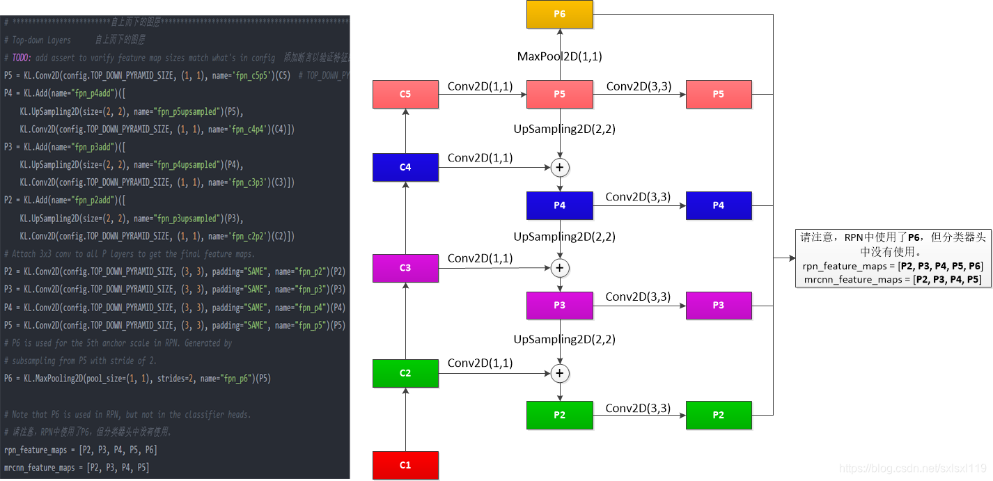# 请注意,RPN中使用了P6,但分类器头中没有使用。