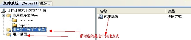第四步:为了在开始程序菜单中和桌面应用程序中看到安装程序,这里我们就需要为项目创建快捷方式。右键选择可执行文件(PersonFinance.exe),创建快捷方式,进行重命名"**公司**管理系统",将该快捷方式拖放到 '用户的"程序"菜单' 中。重复该步骤将新建的快捷方式添加到 "用户桌面" 文件夹中
