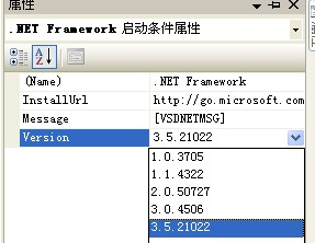 更改方式:在安装项目下面有个检测到的依赖项文件,双击里面的Microsoft .net framework,进入了启动条件选择卡,右键选择.net frmaework 在Version中选择你所需的.net framework框架