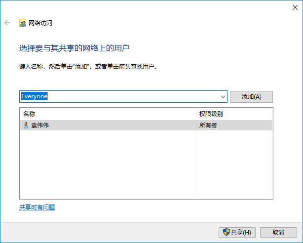 具体步骤:新建文件夹“Share”》右键属性》共享》下拉选择“Everyone”添加》共享》完成
