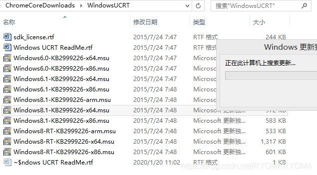 3. 根据自己电脑操作系统选择安装上述安装包。比如我是windows8.1操作系统,基于x64处理器,因此选择上图灰色选中的-x64.msu