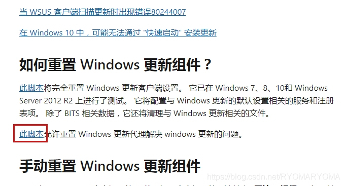 Reset Windows Update Agent脚本下载: