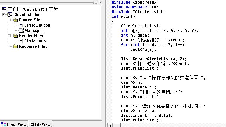 void CreateCircleList(int a[], int n); //有参析构函数,建立只有头结点的空链表