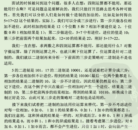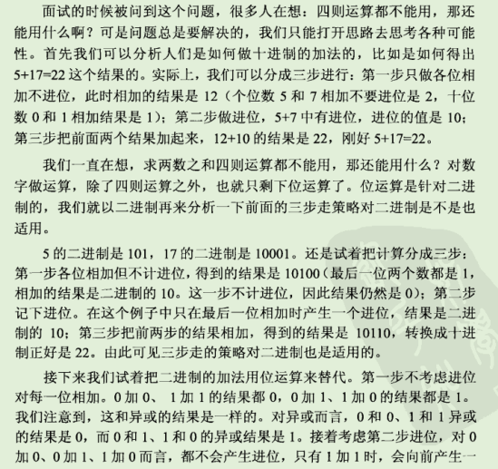 写一个函数,求两个整数之和,要求在函数体内不得使用+、-、*、/四则运算符号。