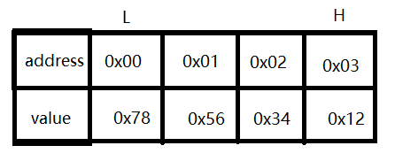 与程序输出一直,低地址存放着0x78,高地址存放着0x12,因此为小端序。