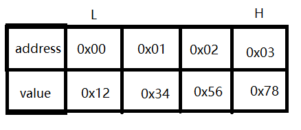 以一个 uint32_t 的4字节类型为例,在该类型的变量中存入0x12345678,从变量的角度来看,0x12为变量的高字节,0x78为变量的低字节。